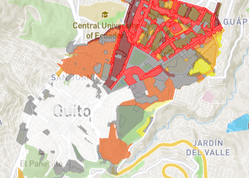 Contiene los archivos de mas de 50 mapas de la zona general de estudio, con información sobre: normativa urbana, equipamientos y servicios, inmuebles, información socioeconómica, arbolado, información socioeconómica, islas de calor, entre otros, así como las Bases del Concurso y Anexos para el e Diseño y Anexos de Pabellones Lúdico-Educativos en Espacios Públicos de la Ciudad de Quito.